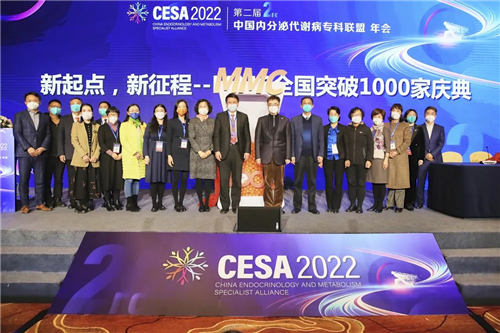 大會舉行了隆重的MMC突破1000家盛典,中國工程院范先群院士、中國工程院寧光院士、朱大龍教授、趙家軍教授、嚴(yán)勵院長、谷衛(wèi)教授,國家標(biāo)準(zhǔn)化代謝性疾病管理中心省級分中心代表:劉萍教授、秦映芬教授、單忠艷教授、鄭超教授、吳勝利教授、陳蕾教授、王育璠教授、杜建玲教授、勵麗教授上臺,優(yōu)秀分中心代表:鄭啟東教授、戴元成教授、董其娟教授、徐鳳梅教授、姜冉華教授、顧雪疆教授、唐榮教授、齊敬霄教授,上海智眾醫(yī)療科技有限公司 CEO李振杰先生,阿斯利康商業(yè)創(chuàng)新執(zhí)行總監(jiān)王健先生一同上臺參與1000家醫(yī)院的落地慶典。